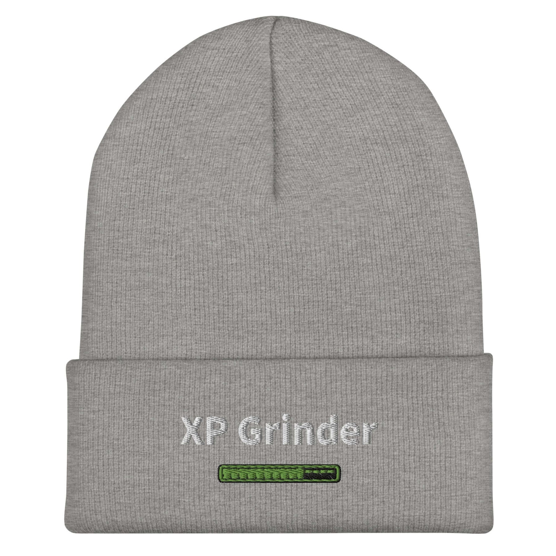 Gray XP Grinder Cuffed Beanie, perfect for warmth and style. Unisex, hypoallergenic, and hand washable.