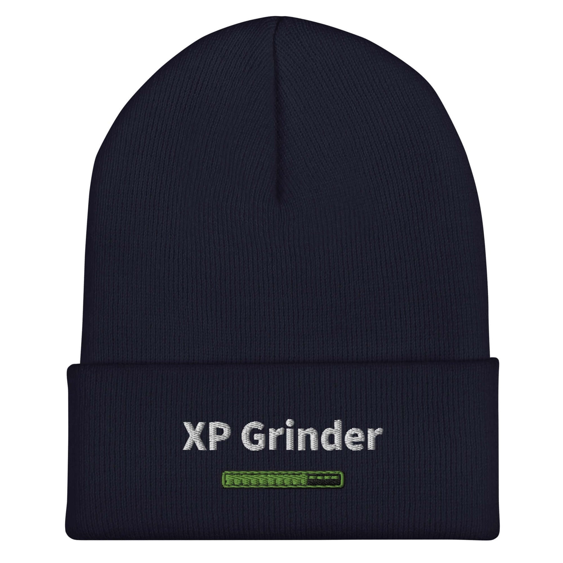 XP Grinder Cuffed Beanie in navy with embroidered logo, a stylish and warm accessory for unisex wear.